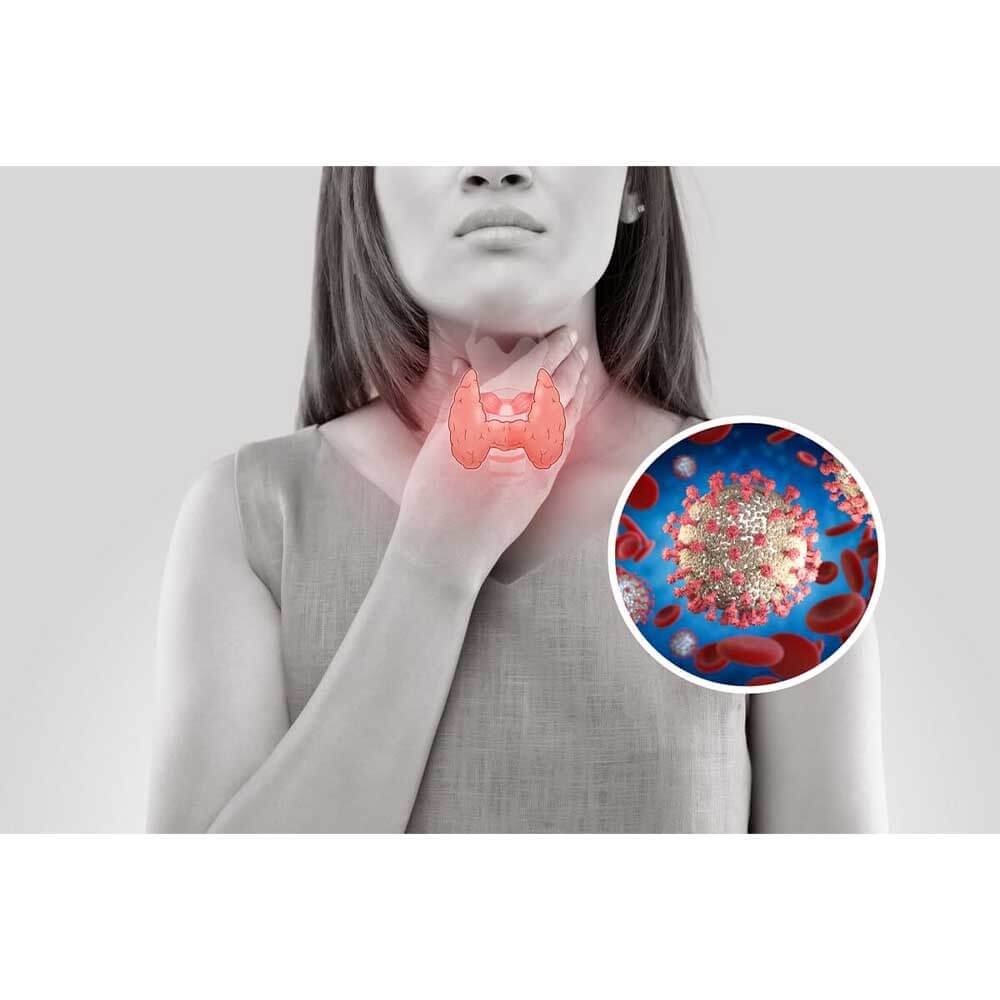 Estudos clínicos encontraram evidências de que a glândula tireoide pode ser um órgão-alvo da Covid-19. O envolvimento da glândula tireoide se manifesta por alterações na glândula ou por alterações hormonais e pode acontecer na fase aguda da Covid-19 ou após a doença. Alguns desses estudos sugerem monitoramento da função tireoidiana durante e após a infecção.