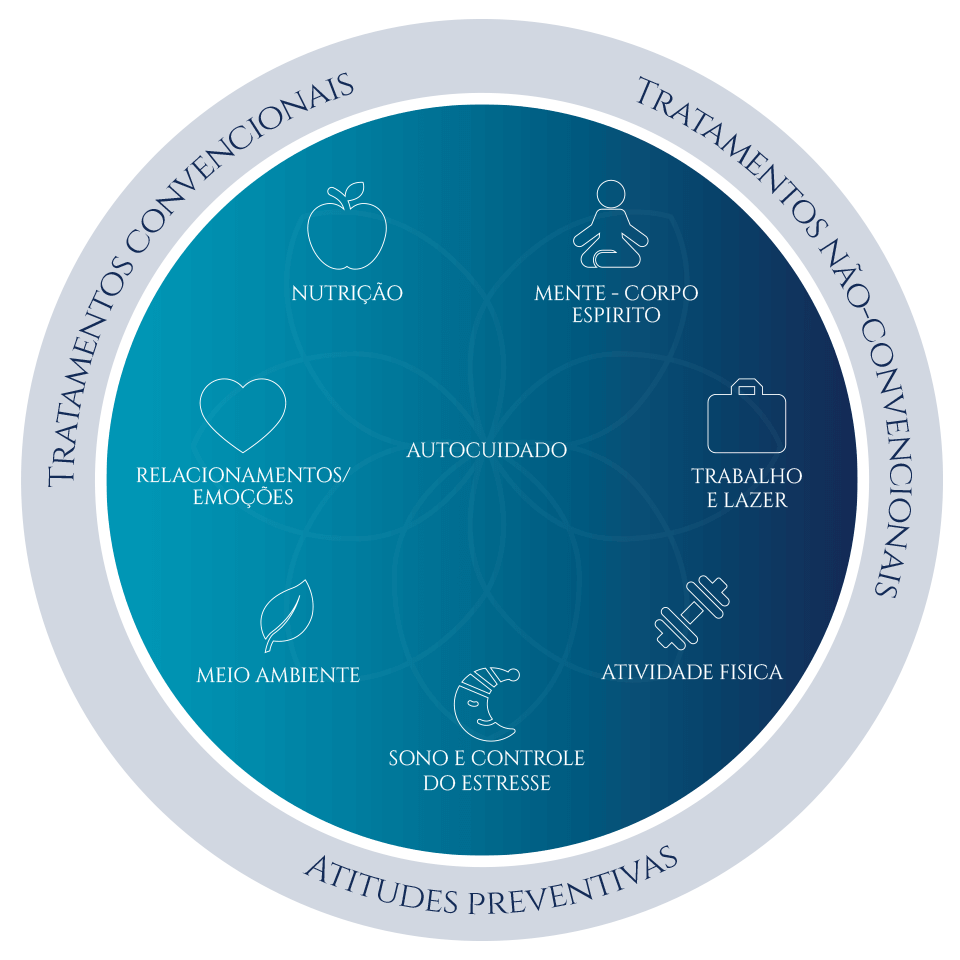 Integração de Terapias Complementares: Pode incluir acupuntura, quiropraxia, medicina mente-corpo (como meditação e yoga) e outras terapias complementares para promover o equilíbrio e a cura.